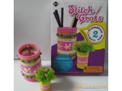 Stitch cross pencil vase & flowerpotContents: 3 plastic canvases1 plastic needle5 colored yarns1 ribbon