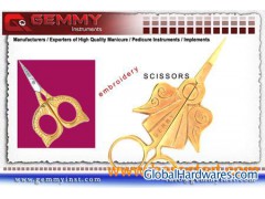Angel Style Embroidery ScissorsAvailable in different finishing:GIA-269 S….. Shine FinishGIA-269 HG…Half GoldGIA-269 G…..Full GoldGIA-269 T…..Titanium Plasma Coated.Material:J-1 410 Stainless SteelRockwell: 40-42For more detail visit our online website ( http://www.gemmyinst.com ).