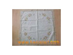 Lace and cross-stitched embroidery 85x85cm linen square table cloth.
