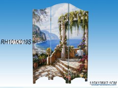 100% handmake wooden folding screen with nice painting on both sides of the frame.made up of 3 parts of wooden frame.many styles and designs for your choice.