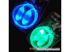 Led shoelacesMaterial: TPU, ABS, LED, PET Size: 800*2.8MM LED color: 6 colours (red/yellow/orange/blue/green/colorful)are available Flashing Mode: Quickly flashing/slowly Flashing / Lighten up (controled by the button) Product packing: Blister box LOGO: Welcome your LOGO, the LOGO can printed on the blister box and Dispensing of shoelaces Battery box Battery: Driver operated by 2 CR2032 lithium batteries Battery life: The 3V&230mAh battery can last for 30 hours for long lighting and 70hours for flashing and can be replaced after it is exhausted CE RoHS passed, water proof This product can be used in bar, disco, season greeting and outdoor functions. Total 100CTNS 100PAIRS/CTN Outer Carton's Measure: 51.5*28.5*36.5cm 4Inner boxes/CTN, Inner box's Measure: 26*17*25, 25PAIRS/Inner box Net Weight7KG, Gross Weight: 8.5KG