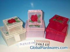 Category Other Marketing Gifts and Premiums Model 246148 Special Features METAL ORGANZA SQUARE BOX W/BEADED ROSE SET OF 2 PCS Dimensions 14X8.5CM Green Product Yes