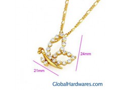 Rhodium or 18k gold plating. surface colors have: champagne 14k 18k 24k. We use environment-friendly technologies and techniques, nickel and leads free. Professional inlay technology, Inlay high quality cubic zirconia. Products are double plating, it is difficult to change the color. Good service and timely delivery, OEM orders are welcome. About the first order, we can accept around 100Usd of the mix order. Pendant size: 24*21mm Whole weight: 2.8g. Gold plating, the color is 24k gold color . Major stone size:2 mm.