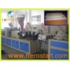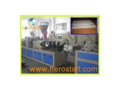 Plastic ceiling production line 1. Material can be extruded out directly after two grades of mixing, and it can also be extrueded by two steps after pelleting. 2. The line is of characteristics of energy and space saving. 3. The line is consisted of conical twin screws extruder, caccum calibration table, haul-offunit, and stacker, and also coorinated with different kindls of moulds to producePVCdoor and profileMODEL YF180 YF240 Vacuum degree (MPa) -0.08--0.09 -0.08--0.09 Center height of T type dies (mm) 320 320 Height from ground to die (mm) 890-1100 890-1100 Moving distance of vacuum calibration table (mm) 400 500 Hauling speed (m/min) 0.3-7.8 0.1-4 Hauling force (KN) 7.5 30 Effective hauling length (mm) 1.0 1.8 Width of rubber (mm) 180 240 Cutting linear velocity (m/s) 58.6 58.6 Max. Cutting section (mm) 180×65 240×65