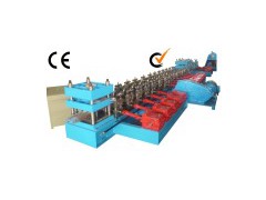 Expressway guard rail roll forming machine, guardrail rollformer, road barrier roll forming machine, producing expressway guardrails This guard rail roll forming machine is comprised of mechanic decoiler, guiding and feeding equipment, leveling device, pre-punching hydraulic device, roll forming unit, post hydraulic mould cutting device, hydraulic station, PLC control system and unloading rack. We can supply the machine producing two-wave guardrail and three-wave guardrail