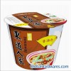 China brand Dong Dao Ren Jia Cup Instant Noodle, sauce steak flavor.Produced by boiling and steaming and air dried, rich nutrient content of wheat can be perfectly retained in the noodles with nice mouth-feel of fresh noodles. Low fat and low calorie. Healthy and green food! Flavor options: 1. Beef noodles 2. Chicken noodles 3. Pork noodles 4. Tomato-egg noodles