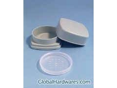 DimensionsLength-2.80in. /71.1mmWidth-2.80in. /71.1mmHeight-1.16in. /29.5mmCapacity1.2 fl. oz. /35.8ccMaterialCover and base-ABSSifter-PP