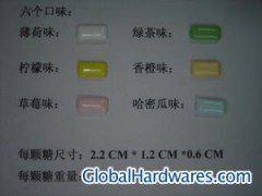 Sugarfree gum, 6 flavours: mint,orange,lemon,strawberry,green tea,cantaloup.7 packing spec: 12g,15g,18g,27g,30g,60g,90g