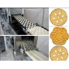 Automatic biscuit production line, with original design, compact structure and high automatic, is developed on the base of absorbing Japanese technology. All working procedures that from dough feeding, sheeting, molding, waste recycling, baking to cooling can be completed automatically in one line. Hundreds of moulds and dozens of technology recipes make it possible to produce all kinds of popular biscuits, such as cream biscuit, layer biscuit, soda cracker, calcium biscuit, multi-vitamin biscuit, vegetable biscuit, etc. WORKING PROCESS: Flour mixing_dough sheeting----biscuit Molding-----baking----oil Spraying---cooling---packingMODEL CAPACITY OVEN LENGTH QH250 80-100KG/HR 16M QH320 150-200KG/HR 24M QH400 300KG/HR 28M QH600 500KG/HR 40M QH800 700KG/HR 40M QH1000 1000KG/HR 60M QH1200 1200KG/HR 60M