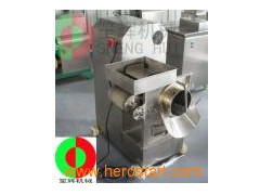 Name: CR-300B fish meat separator Type: CR-300B Power: 2.2 KW Voltage: 380V Output: 300kg/ h Weight: 250kg Specification: 800*650*900mm Features: Mainly used to extract the flesh of fish from fishskin and fishbone. High productivity but less time and energy. The food touching places are adopted high-quality 304 stainless steel, meeting the requirements of national food hygienic standards. Working principle: 1. Get rid of fish head and tripe. Big fish, split in half. 2. Put into the water to rinse, avoiding the separated flesh fish being polluted by fish impurities. 3. Put slices of fish meat into the hopper (The division face towards adopting tube, the backside pressed close to rubber belt. ). Fish moves with the rubber belt and goes into crush zone between adopting tube and rubber belt. The fish meat will be squeezed into adopting tube through its small holes. Then the fish particles will be sent out automatically as adopting tube rotates. Fishskin, fishbone and other impurities will be scraped in the collecting tank by scraper from the outside of the adopting tube. During the whole separation process, it is no need to ask people to operate, which makes it convenient and hygeian. The degree of pressure between the rubber belt and the adopting tube is regulated by a slack adjuster of rubber belt located in the head of the machine. The adjustment range can be changed flexibly according to the size of fish. The extracted fish meat can serves as the raw materials for fish ball, fish paste, fish sauce, fish pie, fish dumpling stuffing, etc., improving fish economic value.