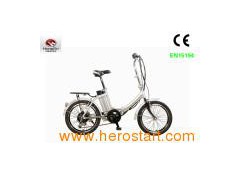 TDN03Z- 636 1) Frame: Aluminium alloy, folding 2) Front fork: Alloy 3) Handle bar & stem: ZOOM, alloy, stem adjusted 4) Rims: Alloy black, silver side edge 5) Wheel size: 20"; 6) Derailleur: 7-speed SHIMANO 7) Brakes: Front/Rear V-brake 8) Motor: 250W, gear, brushless 9) Working style: Pedal assisted & throttle 10) Battery: 36V10AH, Lithium 11) Charging time: 4-5 hours 12) Mileage: 35-40 km 13) Speed: 0-24km/h 14) N. W.: 22KG(Within 4KG of battery weight); 15) G. W.: 30 KG Packing: 1 bike/CTN, folding Carton dimensions: 87*37*77 cm Conveyance: 114units/20';