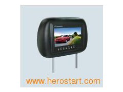 Headrest TFT LCD Monitor with pillow Screen: 7 inchs AU new panel Display format: 16: 9 Video: Dual video input OSD On Screen Display Resolution: 1440(W) X 234(H)=336960pixels Consumption: 7.5W Power Supply: DC 12V System: PAL/ NTSC Earphone output 1 way audio input Blue screen: Blue screen when no signal Full function remote control