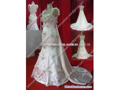 China Magnificent and Exquisit Stain with a Pure Silk Train Silver Thread Embriodery Beading Hand-made Flowers Mermaid Wedding DressDress Model Number:Mr.W3D