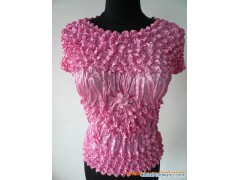 These shirts look great on and have great visual interest. They feature Spike Popcorn at the shoulders and waist with a crinkle texture at the bodice and flounce hem. Flattering tunic length with short sleeves,100%polyester stain.Deluxe Size Fits S-XLCare InstructionsHand wash or machine gentle cycle, lay flat to dry. Do not put in dryer