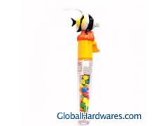 Product Specifications: This is a candy stick that is filled with candies, and has an attractive outlookIt has a transparent body, and has a fish-like design on the top of the candy stickThis will be a nice gift for kids