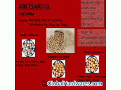 CHICKPEAs: Packing: Bags (5kg, 10kg, 25 Kg, 50 Kg) Folio Packs (1kg, 2.5kg, 5kg, 10kg) *White Chickpeas : 6-7mm, 7mm, 7.5mm, 8mm, 8.5mm, 9mm, 10mm *Spaniola Chickpeas: 6-7mm, 7mm, 7.5mm, 8mm, 8.5mm, 9mm, 10mm *Velvety Chickpeas :6-7mm, 7mm, 7.5mm, 8mm, 8.5mm, 9mm, 10mm Nutriment (100)gr Energy:376cal Protein:19.2g Carbonhdrate:56.7g Fat:6.2g TS NO:142 TSE-ISO-EN 9001:2000 TSE-HACCP-TS 13001