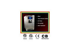 Yogurt machine/Soft ice cream machine HM701 (table top touch screen controls) Feature: Touch screen controls, Air Pump, Heat treatment, Pre-cooling, Mixer Model: HM701 Rate prower: 3.1KW Production Capacity: 40-50L/H Condenser By: Air/water Flavor: Single flavor Net. Dimensions: 71x59x98 (cm) Net weight: 170KG Feature: Twist, Pump, Heat Treatment All the popular soft serve variations from low to non-fat ice creams or Yogurt. Heat Treatment System: Provides a daily heating and cooling cycle to safely maintain dairy products up to 14 days before a complete disassembly and cleaning is required. Freezer Cylinder: One, 2.8liters Mix Hopper: One, 13 liters. Maintain the temperature of mix, under 5 degree in Auto & stand by mode. Mixer: Mixing the material to keep the temperature uniformity in hopper. Air-Pump: Adjustable Overrun from 20% to 80%. Touch Screen Controls: Microprocessor touch control are embedded in durable tempered glass panel. Temperatures in hoppers or freezing cylinder maybe display at any point of operation. Add to Basket