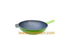 Aluminum Cookware Non Stick Wok Cooking Pan With Ceramic Coating Quick Detail: # Aluminum fry pan # Item No.: JDW-B28 # Size: 20/24/28/30/ # Thickness: 4/4.5/5 # Handle: Plastic, bakelite, silicon, wooden and stainless steel. It depends on customers' requirements. # Inner coating: 2 layers or 3 layers of nonstick coating, such as Whitford, Dupont, Darkin, Dyflon, Teflon and Xyflon and so on. # External: 1 layer or 2 layers of heat resistant paint, marble coating and powder coating. # Bottom: Digital cutting bottom /CD base/induction bottom # Packing: Colour Label, colour sleeve, brown box or color box. Specifications: ---- Size | Height | Thickness | Pcs/ctn | Carton size | Carton CBM | L | W | H | 20CM | 42 | 4/4.5/5 | 8 | 42.5 | 34 | 21 | 0.03 | 24CM | 50 | 4/4.5/5 | 8 | 49 | 38.5 | 23 | 0.043 | 28CM | 54 | 4/4.5/5 | 8 | 57 | 44.5 | 24 | 0.061 | 30CM | 58 | 4/4.5/5 | 8 | 67.5 | 49.5 | 26 | 0.087 | ---- Description: Non-stick, which is a special coating with unique technology, consisting of more strait non-stick reinforced with ceramic inside and creates a compact film, consistently smooth and completely non-porous. The high performance non-stick has been appreciated by international chefs and heads of specialized agencies. Outside coating which is revolutionized the worlds non-stick coatings for home use,ensure lasting peace in high temperature. Higher resistance of the coating from the base and reinforced ceramics makes the cookware more abrasion-resistant and durable. A ture ecological revolution in the kitchen ensures that hygiene in the total absence of PFOA, in addition to healthy cooking and nutrition,together with fat-free cooking allows easier cleaning. Its smooth and shinning coating remains unchanged even after frequent use. Applications: Double bottom steel: slip resistant and energy saving. Suitable for all cookers, including induction oven. Ergonomic handle: Bakelite with inserted polished chrome, heat resistant up to 280 degree. Two layer of internal non-stick coating and one layer of external heat resistant coating. The Particular curved shape: allows heat evenly on all floors of cooking and a consequent energy saving. Competitive Advantage: The work of professional technologist and development lead to new models, objects aesthetically precious and exclusive in their design which enrich each item with technical, qualitative and stylish contents. Heat resistant exterior coating is available in various colors, consistently smooth, abrasion resistant and durable. Qualitative aluminum alloy is advance in natural minerals hard, not rusty and high durability. First layer of interior coating is benefit with high adhesion, integrates aluminum and non-stick coating perfectly. Second layer of interior coating is excellent with its healthy nonstick coating, good cooking performance, abrasion resistant and eco-friendly.