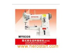 Cylinder-bed compound feed heavy duty sewing machine Unison feed ensures smooth feeding, no matter the matenals are slippery, rough or multi-layer. Binder, presser foot, feed dog and needle feed simultaneously to prevent materials slippage and provide stable sewing. It is developed for heming shoes, purse,belt for sewing bag, sofa and for shaping sport apparatus