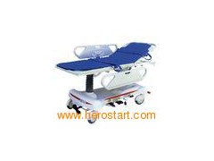 Medical Patient Stretcher Trolley , Hydraulic Ambulance Trolley Quick Detail: Hydraulic patient transfer trolley for hospital use # # CE&ISO certified hydraulic patient transfer trolley # Imported US pump for HI-LO, Trendelenburg and Reverse-trendelenburg movements # Anti-rust treated enameled steel structure with PP mattress surface # Gas spring for back section movement # Central braking system for all wheels Description: 2 pieces divided PP platform Side rails: 2pcs, PP material, collapsible Four 150mm castors with twin-wheel central braking system With 5th steer castor for direction Imported hydraulic pump for movements of Trendelenburg, Reverse-trendelenburg, HI-LO Gas spring for back section movements Oxygen tank holder below the head section Foot pedals for movements at both sides of patient transfer trolley PP chassis at the bottom for holding patients belongings I.V. drip pole and drainage hooks available Technical parameters: ---- Item | 4-function Hydraulic patient transfer trolley | Model | YA-111A economic model | Technical Parameters(3-Functions) | Overall size (L*W*H) | 1930*700*580-825mm | Backrest max upward angle | 855 | Trendelenburg and Reverse-trendelenburg angle | 152 | Height adjustable | 580-825mm | Silent wheels with central locking system | Dia 150mm(6) | Loading capacity | 235kgs | PP side rails | 2pcs, collapsible | Packing | Carton or wooden case | Side rails | 2 pcs, PPaterial, anti-bacteria | I. V pole | 1 pc | I. V pole sockets | 2 pcs | Wheels | 4 pcs | Drainage Hook | 2 pcs | Steer castor for direction | 1 pc | Mattress surface board | 1 set | Gas spring | 1 pc | Imported hydraulic pump | 2 pcs(POWER-PACKER) | Foot pedals | 2 sets at both sides of trolley | ---- Pictures of trolley: Patient trolley with Aluminum alloy side rails: Other model with 150mm(6) wheels: Packing: Our factory: Accessories for bed: Competitive Advantage: 1. Professional manufacturer and supplier of hospital furniture over 20 years, and most of our products have been awarded with international CE and ISO certificates 2. Always striving the best to find out solutions for hospital furnishing, for example, ICU room, general patient rooms, operation rooms, examining rooms etc. etc. 3. Besides our own models, we also provide OEM/ODM service for some well-known brands 4. We provide 1-2 year warranties and life-time training and after-sales service