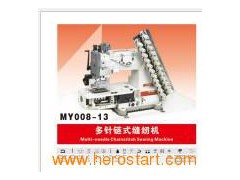Such machinery have adopted the platform sewing worktable, the multi-needle needle-bar mechanism, needle bar thread-taking-up, multi-looper thread-hooking, feed dog feeding (or roller wheel feeding) to form the multi-needle multichain stitches. They are ideal for the ornamental sewing of knitting materials for the children's wear, underwear, sports wear and women's wear. The sewing speed reaches 3000 spm. The sewing performance is stable, the moment light, noise low, vibration small and the rotation is stable and smooth. As required by the sewing procedures, the ornamental top-stitch frames can be added or canceled. Needle gauge covers from 8 needle to 33 needles. Machine types of different specifications are available for users.