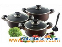 6 Piece Nonstick Aluminum Cookware Set with Heat Resistant Coating Details: 6 PCS Aluminum Non-stick coating cookware set Thickness:3.0mm 24*9.5cm saucepot 26*10cm saucepot 28*10.5cm saucepot Applications: Gas cooker, Ceramic Specifications: ---- Item name| 6PCS Aluminum Non-stick coating cookware set| Item No.| JP-ALNO2C| Material| Aluminum| Size(cm):| 24*9.5cm saucepot 26*10cm saucepot 28*10.5cm saucepot | Thickness| 3.0mm| Interior Coating| non stick coating| Exterior Coating| heat resistant coating| Handle:| Bakelite nob| Lid| Glass lid| Usage:| For home, cafeteria, restaurant| Package| 1 set/color box 4 sets/CTN Color:black or red| Advantage:| Fast heat transfer, quick heated, save time and energy| ---- Competitive Advantage: 1. Fast delivery 2. Factory price 3. Elegant design 4. Good service 5. We can do according to customers requirement 6. We can accept all the shipment terms: FOB, CIF , EXW, CNF and so on 7. We can accept all the payment terms, T/T, L/C, D/P, D/A, O/A and so on
