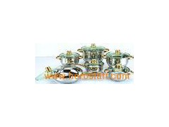 12 PC Polish Stainless Steel Cookware Sets with Golden SS Handle Details: 12PCS cookware set Golden S/S handle, 0.3mm body thickness 16x9.5, 16x9.5, 18x10.5, 20x11.5, 24x12.5, 24x6.5cm Application: For home, cafeteria, restaurant and so on. Specifications: ---- Item name| 12 PCS Cookware Set| Item No.| JP-02G| Material| Stainless Steel| Size(cm):| 16x9.5, 16x9.5, 18x10.5, 20x11.5, 24x12.5, 24x6.5| Thickness| Body:0.3mm| Handle:| Golden S/S handle| Lid| Glass lid| Finish:| inside and outside mirror polish| Usage:| Suitable for all heater, induction cooker available| Package| 1set/color box;2sets/ctn;2500sets/40HQ| MOQ| 2000 SETS| ---- Competitive Advantage: 1. Fast delivery 2. Factory price, high quality 3. Elegant design 4. Good service 5. We can do according to customers requirement 6. We can accept all the shipment terms: FOB, CIF , EXW, CNF and so on 7. We can accept all the payment terms, T/T, L/C, D/P, D/A, O/A and so on