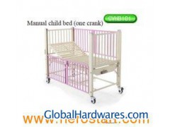 Manual child adjustable medical beds one crank for home care L1650 W800 H650 - 1260mm Specifications: Made with the Warm and Comfortable Color, Rack Type Adjustable Guardrail to Protecet the Children Sliding from the Bed, BED DIMENSION:L1650W800H650- 1260mmBackrest7554" mormal castors (two with brake two without brake)