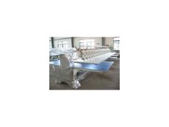Specifications: 1) Head number: 202) Needle number: 93) Head interval: 330mm (according to your requests)4) Embroidery range: 660 x 1,100mm or 1200mm(according to your requests)5) Size of working bench: 7,620 x 2,240mm6) Power supply: 380V / 220V7) Configuration: DAHAO computer(10 inches or 5 inches), three-phase stepper motor, Panasonic servo motor x 1.5kW (made in Japan), hook (made in Japan), bobbin case (made in Japan), encoder (made in Japan), belt (made in Italy)Features: 1) 5 or 10 inches of liquid crystal makes the operation intuitionistic and convenient2) Design memory ability: inner memorizer is capable of storing 99 designs, with a maximum of 2,000,000 stitches 3) Adjustable stop position: adjusted range from 97.5 to 102.5 degrees to satisfy different kinds of machines4) Cyclic embroidery, have not restrict in repeat frequency5) Design circumvolving and zooming, delete, copy, output ability6) Embroidering design periphery: a) The design range can be calculated b) The design periphery and the cross line located at starting point can be embroidered c) Convenient for locating7) Automatically change color, return and patch8) Automatic repeat of embroidery9) Automatic embroidery of the batch design10) Automatically return origin, return stop11) Embroidery location and offset origin can be set arbitrarilyInner packing: Vacuum packingOuter packing: Standard wooden case