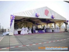 Characteristic one : According to you need,the size you could choose freely.the wedding tent could be width of 15m/18m/20m/21m/25m/30m ,and the Maximun tent length is no limited.Characteristic two:The framework material used High reinforced aluminium 6061/T6, Sizes of cross section of main profile:168x89x4mm,203x110x4mm,256x121x4.5mm.Characteristic three: 100%high tenacity polyester textiles with double side PVC or transparent PVC coating cover . Roof fabric is 850g/sqm; Side wall fabric, Sun shading are 650g/sqm.Characteristic four:The Color available have white, red, yellow, blue, green, black, grey, transparent etcCharacteristic five:Max.wind loading reachable for 80km/Hour, don't worry about the wind blown over.Characteristic six: Waterproof, anti-UV radiation, flame retardant according to DIN 4201,B1/M2.Characteristic seven:The tent can be widely used for outdoor exhibition, sports event,party,trade show,trade fair,celebration, outdoor wedding,festival,advertising, temporary workshop and warehouse.Characteristic eight:Optional accessories:Wooden floor、Glass wall、Glass door、Ground anchors、Weight plate、Sidewalls with pvc-clear window、Rain gutters、Decoration ceilings and inside curtain.Characteristic nine:Our company certificate have the Product registration certificate、China-Asean Expo 、ARA、China Association Of Exhibition,etc.http://www.safe-tents.com/