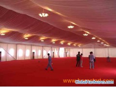 Size information: 1)Tent Clear-Span Width: 20m 2)Eave Height: 4m 3)Ridge Height : 7.2m 4)Roof Pitch: 18° 5)Bay Distance: 5m 6)Maximum Tent Length : No Limited Frame material: 1) Framework material: hard pressed extruded aluminum alloy 6061/T6. 2)Sizes of cross section of main profile: 203x110x4mm 3)Max wind loading:80km/Hour 4)The frame is strong,durable,light in weight, not easy to rust and distort 5) Eave connection:Hot-dip galvanised steel insert Cover material: 1) 100%high tenacity polyester textiles with double side PVC coating cover. 2) Waterproof, anti-UV radiation, flame retardant according to DIN 4201,B1/M2. 3) Weight for roof cover:850g/square meter(opaque PVC). 4) Weight for side wall cover,triangle cover and gable cover :650g/square meter ( transparent PVC ).http://www.safe-tents.com/