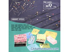 Brass Pins 1) Composition: brass2) Size: 0.66 x 22mm3) Nature: solid headed brass pinsPacking: 500g/boxSafety pins Quantity: 1gg/boxSilver head 1) Composition: silver2) Size: 0.6 x 26mm3) Nature: stainless steel shirt pins
