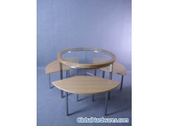 Material: metal tube, wood panelMain table:R: 52mmH: 770mmSeparate table (3 pieces):W: 52mmD: 106mmH: 495mm