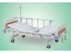 Hospital bed ICU bed medical bedABS Double-crank Manul Care hospital bed SLV-B4020Specification: 2120*970*485mm (L*W*H)Description: Functions of backrest and footrest, epoxy coated bed frame, aluminum side rails, mounted on castors with breaks, self-protectde system of the crank. ABS board of bed head and foot. The bed surface is made of imported cold steel plate by impact molding, to remove rust by ultrasonic, and coated by electrostatic powder coatings spraying to beanti-impact and fadeless. Option: Deluxe castor, Over-bedtable I. V. Stand.