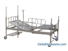 Stainless steel manual bed(2 cranks) with stainless steel sideguard bed-curtain shelf shank. Spec.: 2000*900*550(mm) Model NO.: f-322 Productivity: 80000pc/year Unit Price/Payment: FOB USD35.99/PC Company: Guangdong Foshan East Sweet Medical Instrument Co., Ltd