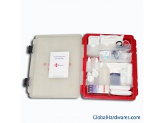 Medical bagModel No. : KT29080Name: First aid kitUnit Meas(CM): 35x29x8cmSPEC.: PP, 108 PCS first aid kit Description: 1Adhesive plaster, assorted size, PC, 502Steriled gauze swab, 3""x3"", PC, 43First aid dressing bandage, 10x12cm, roll, 14First aid dressing bandage, 8x10cm, roll, 15Conforming bandage, 8cm x 4 m, roll, 16Conforming bandage, 6cm x 4 m, roll, 17Eye wash, 5ml, bollte, 18First aid burn ointment packs, 0.9g/pack, pack, 29Triangular bandages, 96x96x130cm, PC, 210Cotton roll, 20 g/ roll, roll, 111iodine solution, 100 ml, bottle, 112Steriled eye pad, 6x8cm, PC, 213First aid tape, 2.5cm x 2 m, roll, 114resuscitation mask., 18x18cm, PC, 115Instant cold pack, 100g/pack, pack, 116Antiseptic wipes, 12x19cm, PC, 917Soap wipes, 12x19cm, PC, 418Alcohol prep pad, 65x30mm, PC, 1019Bandage scissors, 15cml, PC, 120Disposable vinyl gloves, L size powder free, PC, 421Safety pins, #4, PC, 10Packing: 1PC/shrink packCTN Meas(CM): 60x37x51cmQty/CTN(PCS): 12G. W(KGS): 17N. W(KGS) : 15