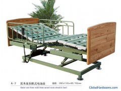 Double-crank bedKey Specifications/Special Features:Model: A2 Production name: electrical wooden hospital bedDimension: 2,080 x 1,100 x 490-700mm Properties:The head and foot of the bed is adopt willow.Bed board is made of cold-roll steel sheets.Punching press and shaping in one time.Bed platform becomes of four sections metal sheet owing to ventilation holes bended downwards to easily clean and protect mattress to the external effects.Backrest position is adjusted between 0-70 degrees by electrical motor controlled with handle panel.Leg rest position is adjusted between 0-35 degrees by electrical motor controlled with handle panel.Height of bed is adjusted between 49-70 cm by electrical motor controlled with handle panel.Electrostatic painted steel construction.Material: willow, cold-roll steel sheets.Certificate: ISO 9001: 2000 and ISO13485: 2003.Features: stable, durable.