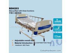 Bed base, leg and frame are all made of cold-rolled steel plate and tube and coated by electrostatic spray after twice phosphatization. The quality attains national standard. The bed is solid, durable and nice in outside profile and able to support over 250kgs. The revolving levers turn flexibly and are protected against the unlimited rotation. Silent castors with two brakes of high strength and high wear resistance make the bed move and position flexibly, lightly and conveniently. The bed is equipped with I. V hooks and drainage bag hook.