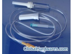 Stopper spike protective cap, stopper spike, injection molding drip chamber, 1300mm tube, flow regulator, reinforced two-pass, cylindrical latex tube, 6: 100 infusion two-pass, two pass protective cap, disposable sterile injection needle. Company: Shandong Polymer Ruitong Medical Instrument Co., Ltd.