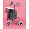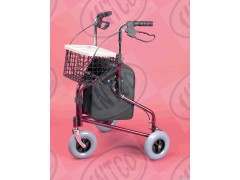 Steel Delta Rollator(Tri-walker)Steel powder coated frameEasily folded for storage and travel. With standard large 8'' fat style caster. With basket, meal plate and bagEasy squeeze and release hand brakes come with locking mechanism.