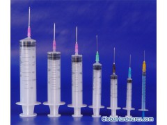 Disposable syringe for hypodermic, intramuscular and intravenous injection.