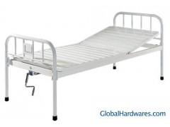 Plastic-spray steel hospital BedSLV-B4012 medical care bed, ICU bedSpecification: 2020*900*500mm (L*W*H)Material: Plastic-spray steel construction Function of backrest controlled by one crank, Urine hooks I. V. Drip hole, patient record holderOption: Castors, Guardrails, I. V. Pole