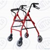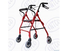 Aluminum RollatorAluminum liquid coated frameEasily folded for storage and travel Contoured padded backrest, add comfort and lumber supportEasy squeeze and release hand brakes come with locking mechanismWith 6'' wheels. ABS seat.