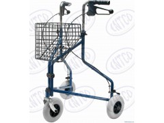 Steel Delta Rollator (Tri-walker)Steel powder coated frameEasily folded for storage and travel. With standard 8'' fat style caster. With basket. Easy squeeze and release hand brakes come with locking mechanism.