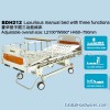 BDH212 Luxurious manual bed with three functionsOverall size: L2100*W950*H470-750mmMaterial&Introduction: 1. Headboard: ABS Plastic; 2. Railing: Foldaway Aluminum alloy protective with six stands; 3. Panel, leg and frame are all made of cold-rolled steel plate and tube and coated by electrostatic spray after twice phosphatization; 4. Luxurious wheels with Center controlled lock (Diameter: 150mm); 5. Diner talbe.