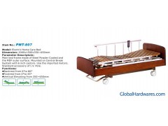 Dimension: 2000x1500x350_650mmParameter Description: Main bed frame made of Steel Powder Coated and the MDF outer surface. Mounted on Central Break System with 6 inch castors. Use the imported motors. Standard accessory of I. V. Pole. Functions: Backrest from 0° To 80° Footrest from 0° To 45° Vertical Elevating from 350mm--650mm Model NO.: PMT-807 Company: Permanent Medical Equipment Manufactory Ltd.