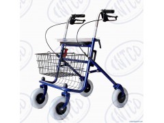 Steel RollatorSteel powder coated frame. Easily folded for storage and travel. With standard lare 8'' fat style wheels. Easy squeeze and release hand brakes come with locking mechanismWith basket, meal plate available. PU seat.