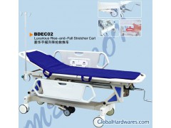 BDEC02 Luxurious Rise-and-Fall Stretcher CartOverall size: L1950*W640*H570/860mmMaterial: The cart frame is made of quality aluminum alloy. Cart surface and side rails are shaped by once injection molding of PP engineering plastics. Introduction: The international advanced centrally controlled brake system is applied to the cart and therefore stable and reliable. The cart surface is of separate structure with the upper part supported by the imported pneumatic spring. Thus the cart is operated easily and simply. Accessory: Double hook I. V. Rod and Oxygen tank holder and mattress