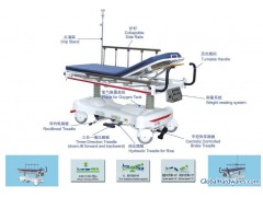Size: 2070*730*660/940mmMaterial: 1)The Stretcher Cart is made of galvanized steel tube and surface coated by electrostatic spray. 2)The back board is made of American electrotyped board with X-ray cassette. 3)It is equipped with the imported double hydraulic rise-and-fall system. Introduction: The international advanced centrally controlled brake system is applied to the cart and φ 200mm dustproof castors make the cart move steadily, reliably and lightly. The bed can be raised and lowered, tilted forward and backward which is controlled by the treadle lying on two sides of the bed. The bottom cover is made of PP material and shaped by once injection that can be easily cleaned. The cart surface is of separate structure and the upper part is supported by the imported large hydraulic pole to make the bed never sway. It is completed with infusion stand, drainage hook and collapsible aluminum alloy side rails. It is the best choice for emergency room, ICU, ICU bed and emergency bed for transferring patient. The security, reliability and practicability of the Stretcher Cart attain national standard. Its in-bed scale system increase efficiencies by taking accurate weight readings with the patient in any position.