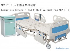 Luxurious Electric Bed With Five Funtions MDY101DSize: 2160*950*450/700mmMaterial: Bed base, frame and leg are all made of cold-rolled steel plate and tube and coated by electrostatic spray after twice phosphatization. The quality attains national standard. Head and foot boards are made of imported PP materials. Model NO.: MDY101D Productivity: 500pcs/month Unit Price/Payment: FOB SHANGHAI USD100/PC Origin: China Packing: Wood Box Min. Order: 5 Company: Zhangjiagang Medycon Machinery Co., Ltd.